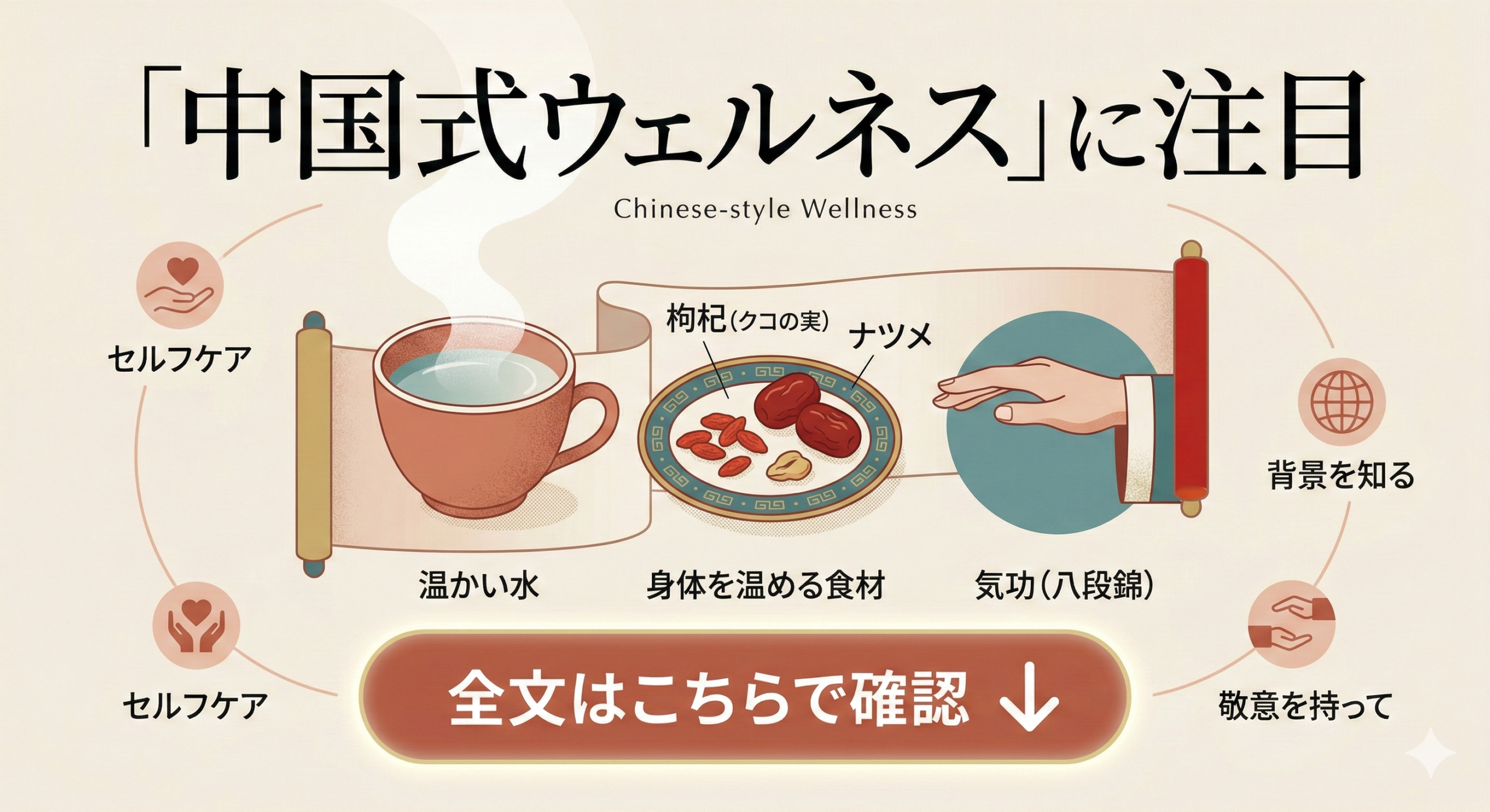 2026年初頭、米国の若者を中心に、中国の生活習慣に由来するセルフケアが注目を集めている。短尺動画をきっかけに「中国の時代」「Chinamaxxing」といった言い回しが広がり、日々の健康習慣を見直す動きにつながっている。