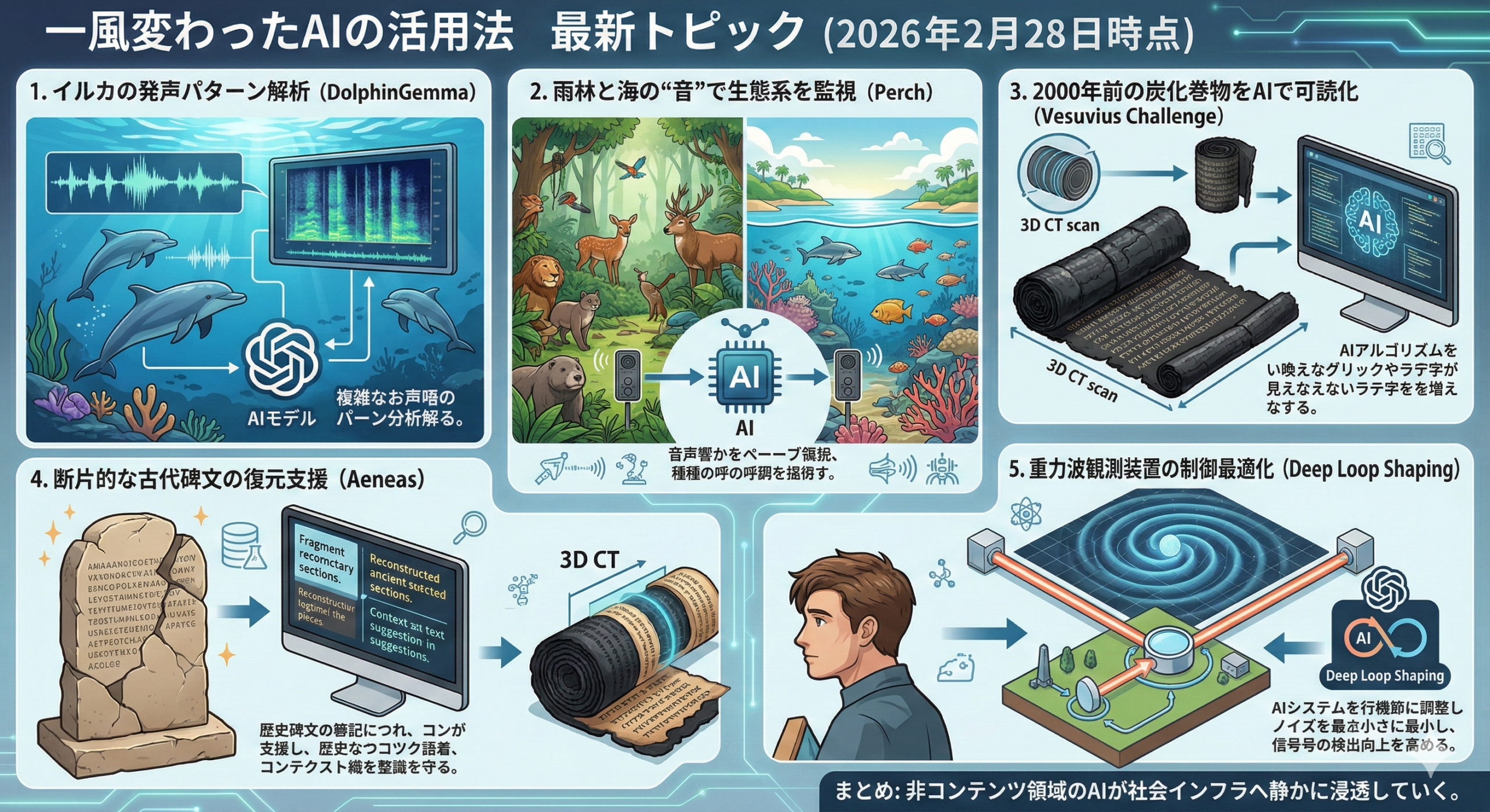 【2026年2月最新】一風変わったAI活用法5選:イルカ対話・古代文字解読・重力波観測まで