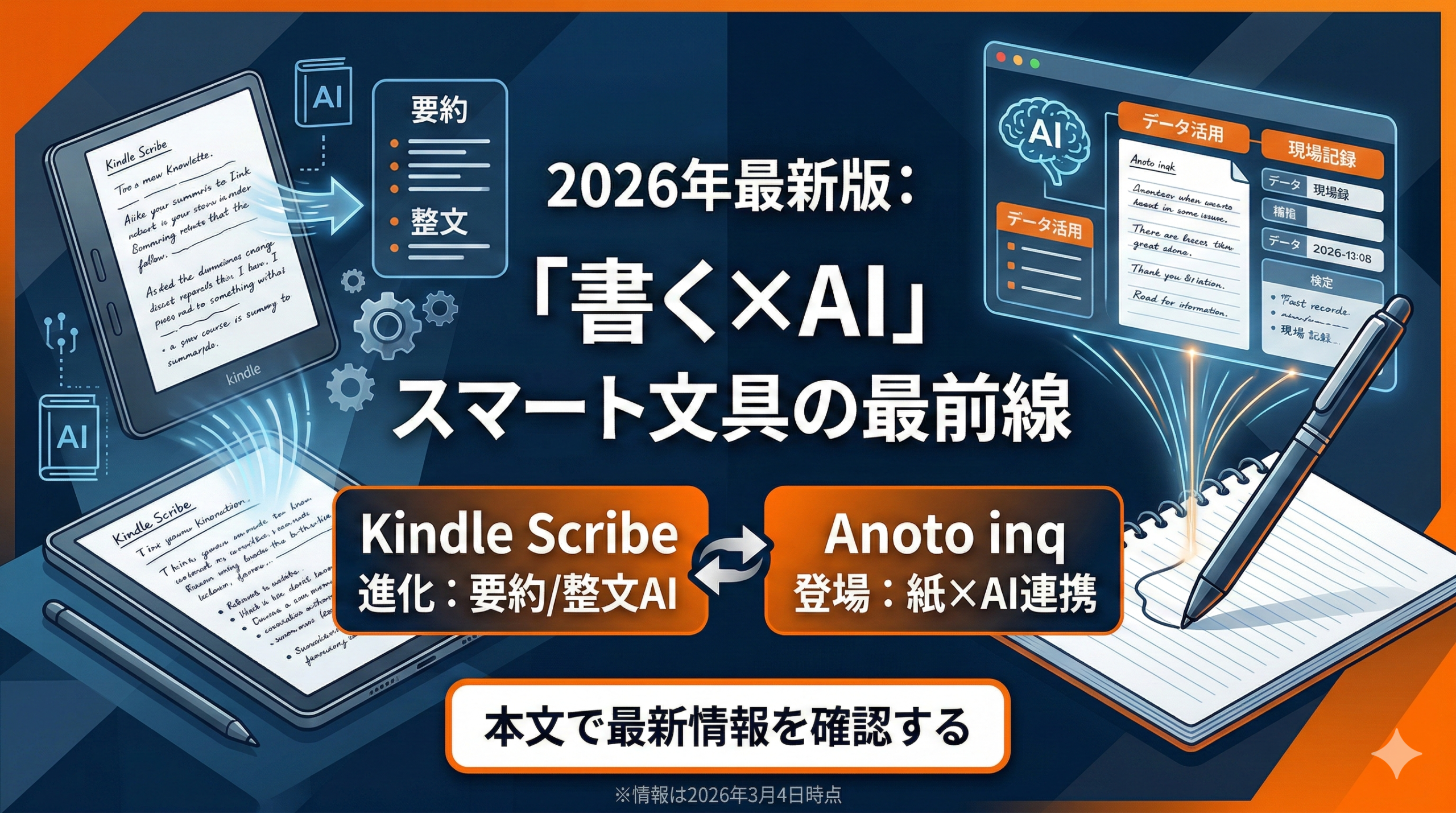 2025年から2026年にかけて、AI搭載スマート文具は「デジタル化」中心の時代から、「思考の下書きをAIで再編集する」時代に入りました。ポイントは、手書き入力・要約/整文AI・クラウド連携が1つの体験として統合され始めたことです。本稿では、2026年3月4日時点で公表情報を確認できる主要トピックを整理し、実務導入の観点まで掘り下げます。