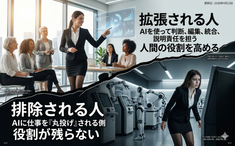 2026年時点で問われているのは、AIを使うか使わないかではない。どの工程をAIに委ね、どの工程を人間が引き受けるかを設計できるかである。この設計能力の差が、「排除される人」と「拡張される人」の分岐点になりつつある。