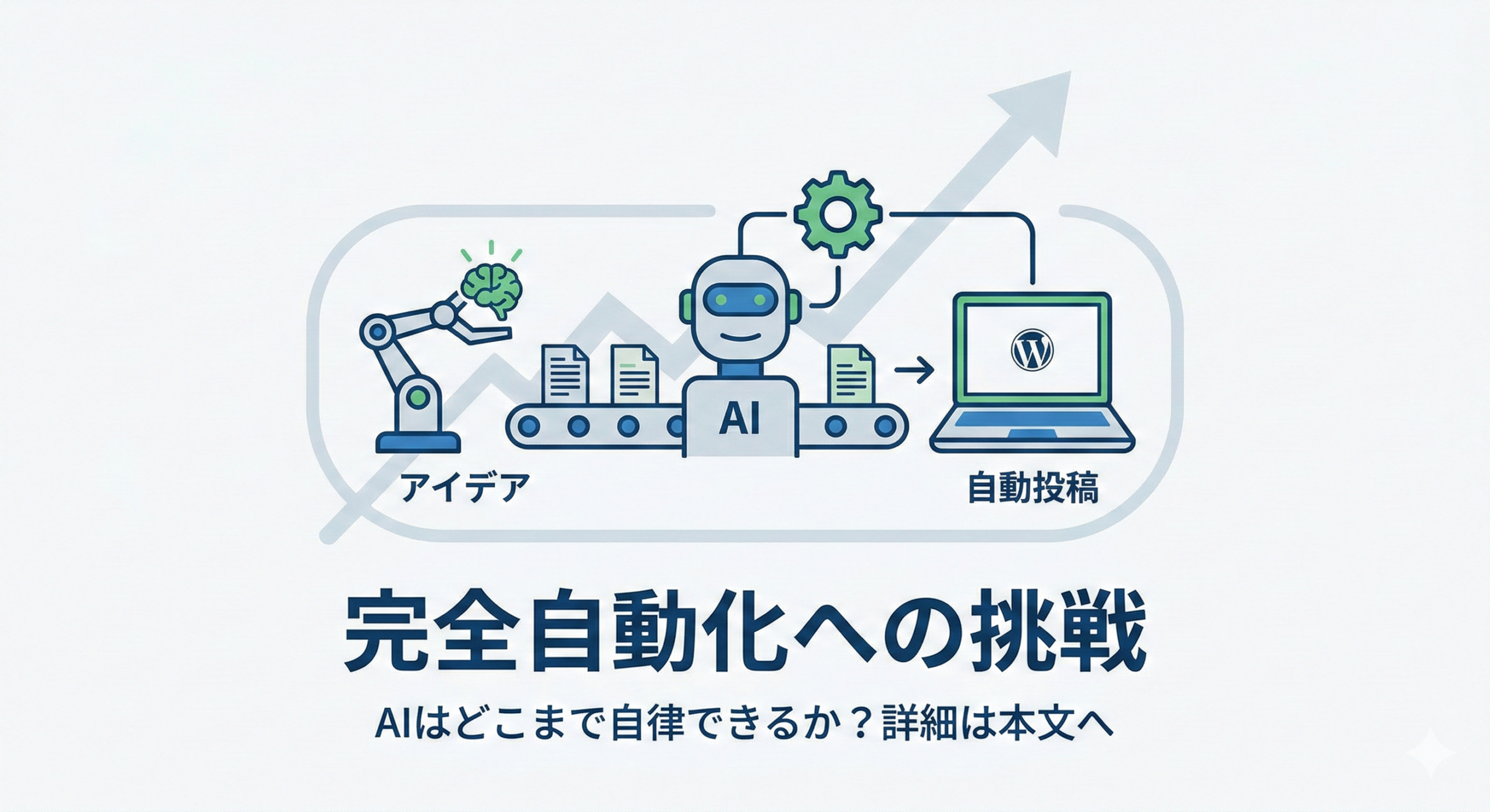 最終目標は、企画・生成・公開までの完全自律型パイプライン構築です。 人の介在は監視・最終承認のみに限定し、 安定稼働する自動投稿基盤の確立を目指しています。
